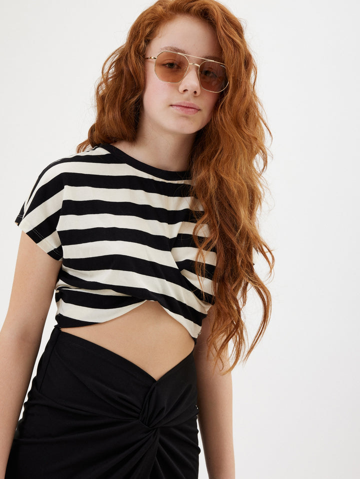 Monnalisa top bianco/nero bambina in cotone
