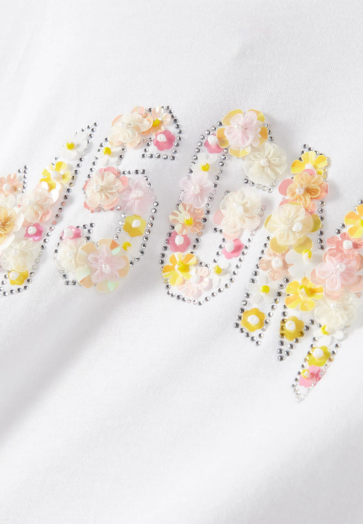 • Maxi logo con applicazione fiori e strass sul davanti