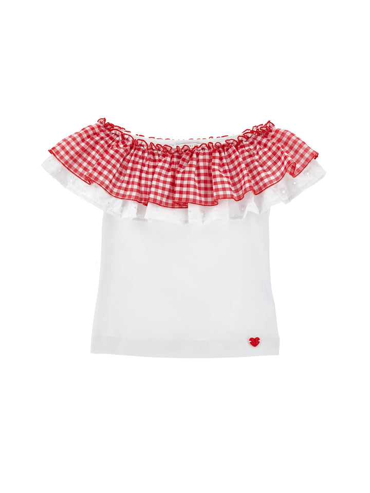 • Fantasia a quadretti rosso-bianco sullo scollo