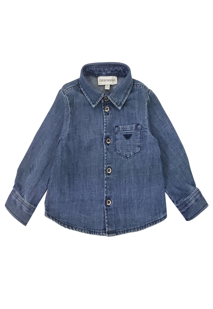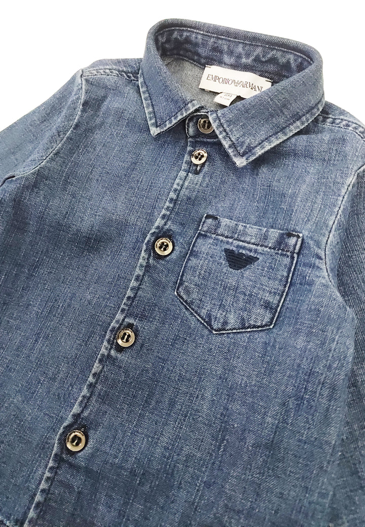 棉牛仔布中的Emporio Armani蓝色蓝色衬衫
